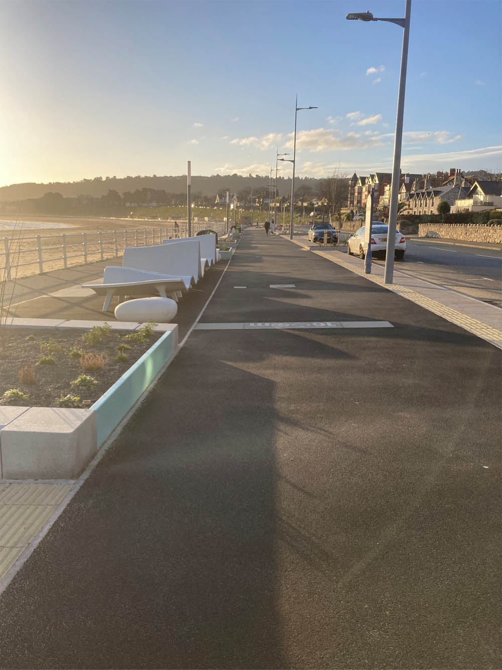 - Widening of the promenade to create more space for pedestrians and cyclists. The upgrade also featured new benches, shelters, and modern lighting.